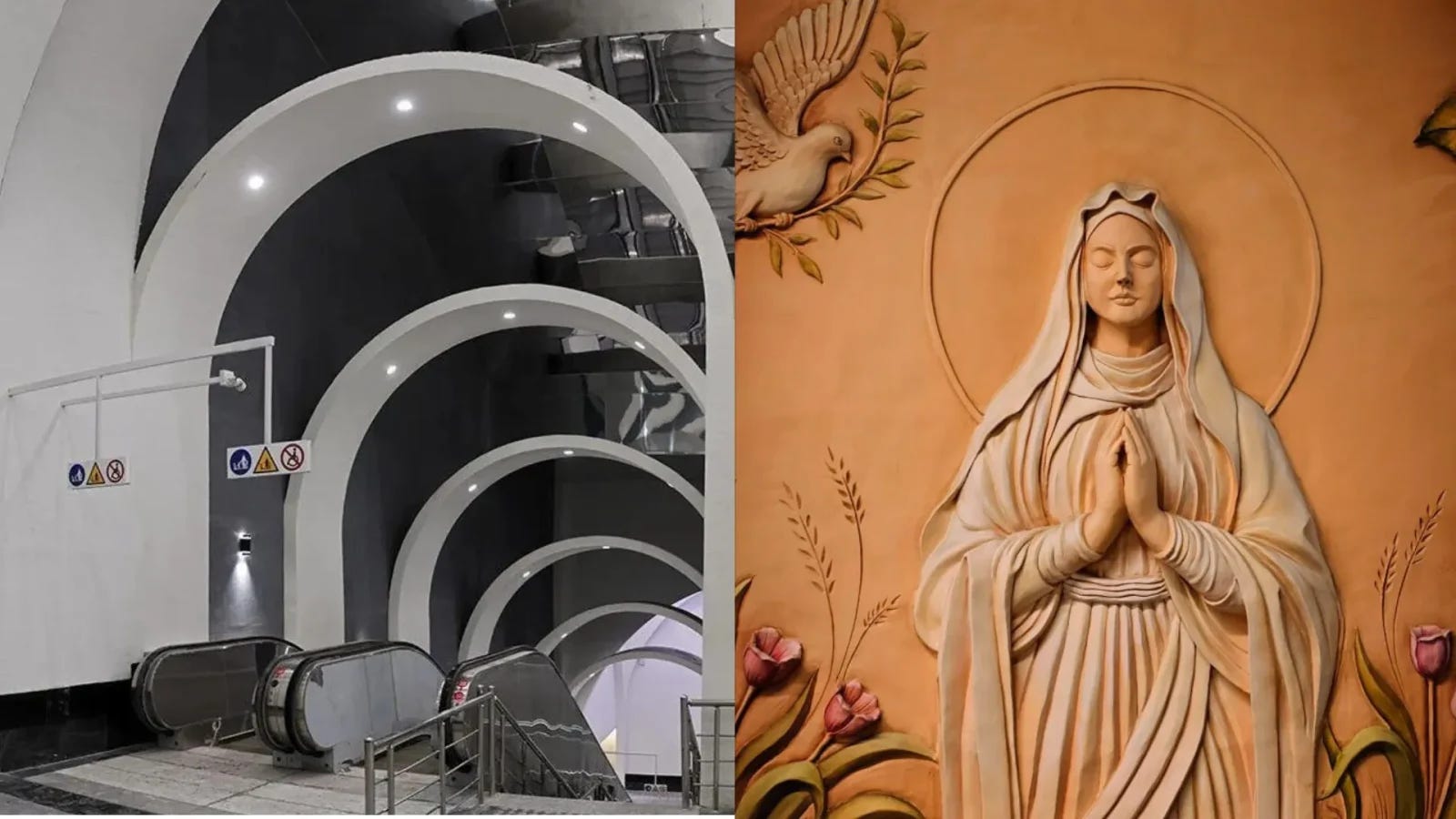 Bathed in soft light and adorned with sweeping arches, the station features breathtaking murals and Christian-themed motifs that honor the legacy of Saint Mary—a figure deeply revered in both Christianity and Islam. It is a space carved out of silence and light, inviting commuters and visitors alike to take a moment of reflection.